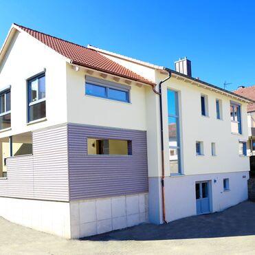 - Putzfassade und Holzschalung aus sibirischer Lärche