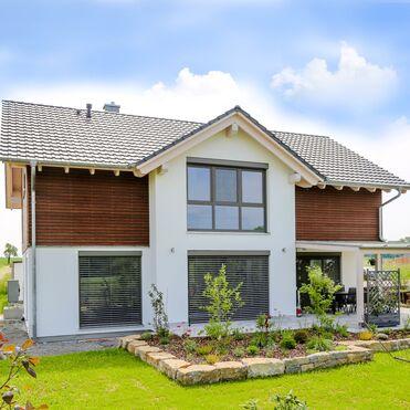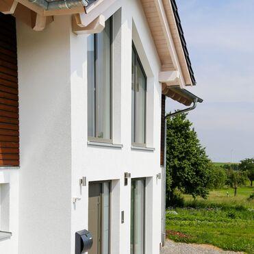 - Holzrahmenbau / Putzfassade / waagrechte Holzverschalung