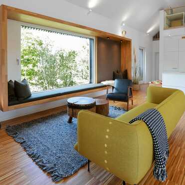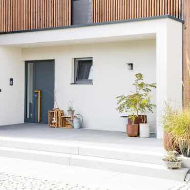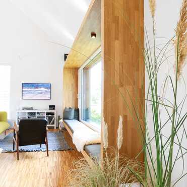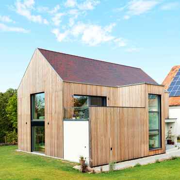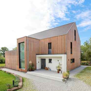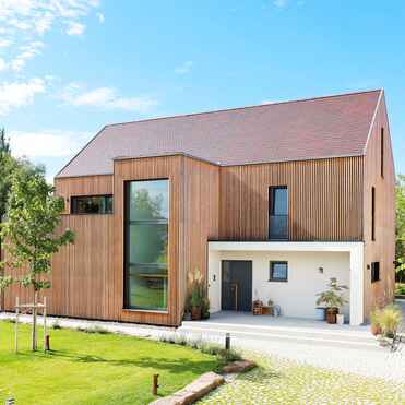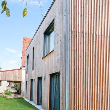 - Holzrahmenbau / senkrechte Holzverschalung aus Lärche
