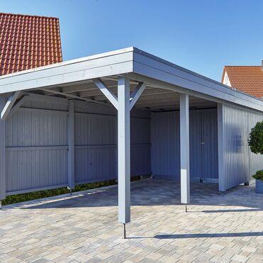 - Carport mit Holzverschalung aus Fichte (Keilstülpschalung)