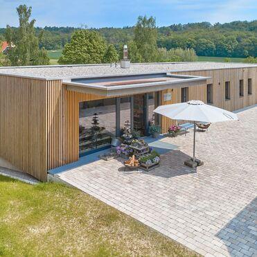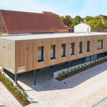 - Holzbauarbeiten (Außenwände aus Massivholz, Fassade aus Weißtanne)